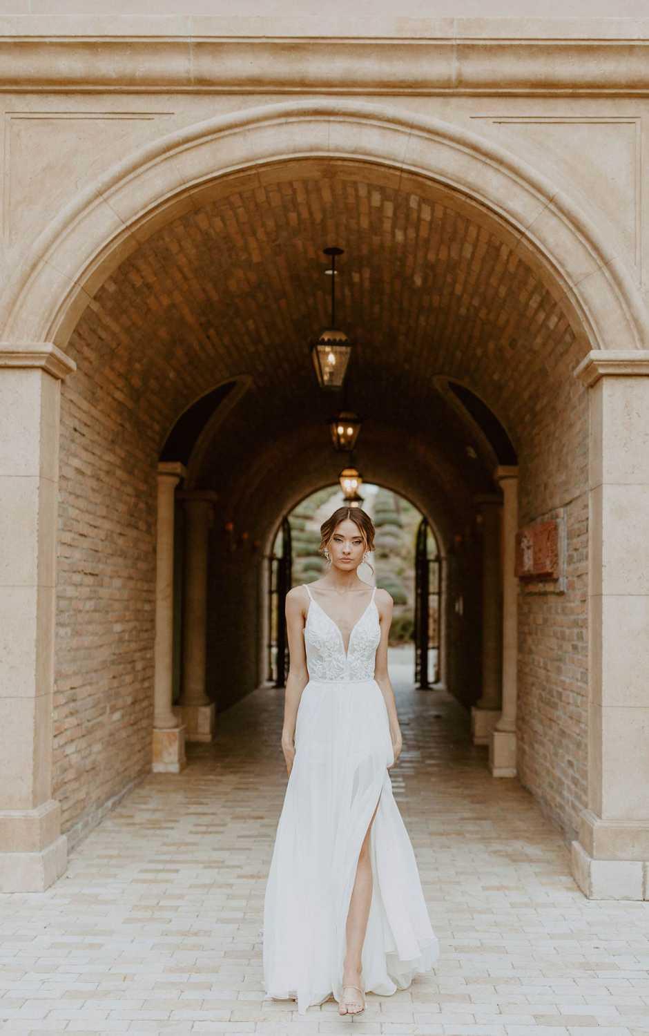 Essense of Australia #D3508 - Romantic A-Line Chiffon Wedding Gown with Detachable Beaded Belt