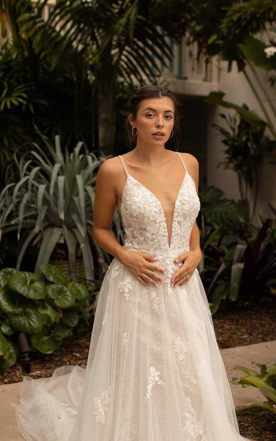 Essense of Australia #D3707 - Dreamy Lace Wedding Dress with Plunging Neckline
