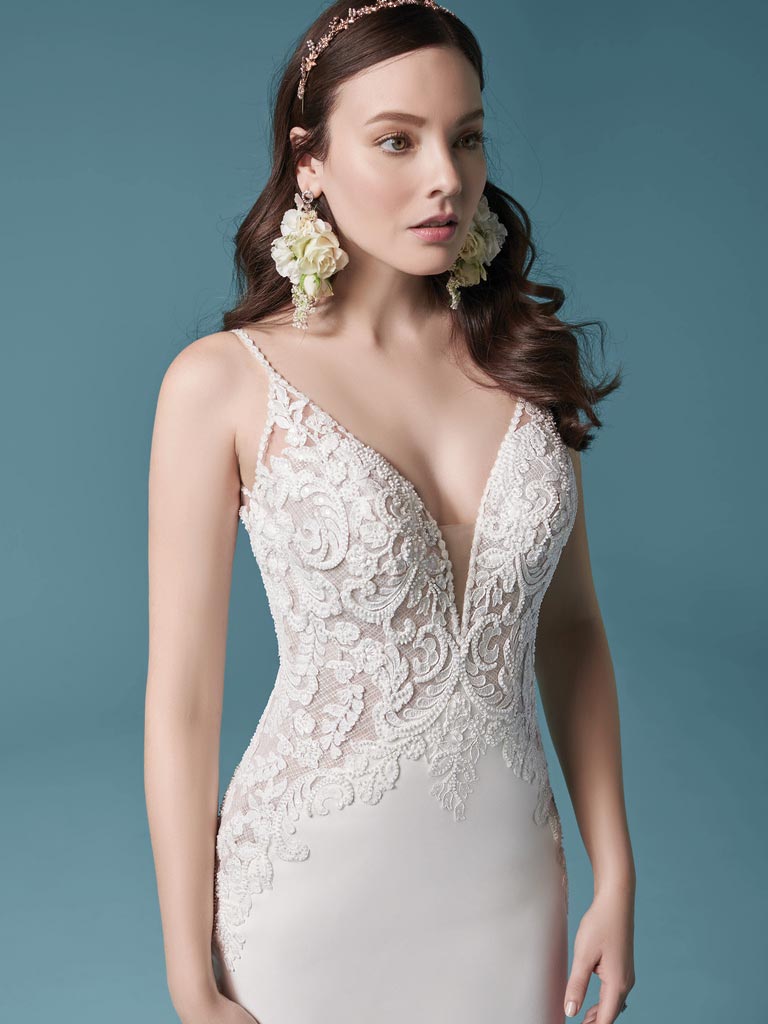 Maggie Sottero "Nikki" Crepe Mermaid Wedding Gown w/ Lace & beaded bodice (sleeves sold separately)
